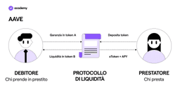 Su Aave tutto avviene tramite gli smart contract del protocollo di liquidità. Vediamo con un esempio come si svolge il prestito, dal punto di vista delle due parti.